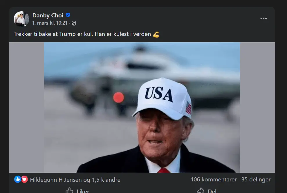 Subjekt-redaktør Danby Choi skaper igjen debatt – denne gangen etter helgens amerikanske og israelske angrep på Iran. På Facebook gikk han lenger enn før i sin omtale av USAs president Donald Trump.